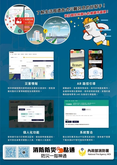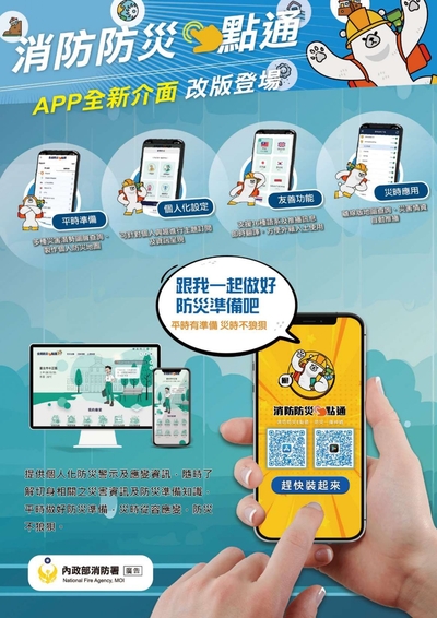 防空避難保安全,地點平時要熟記,可下載「警政服務APP-防空疏散避難專區」、「消防防災e點通APP」查詢使用。