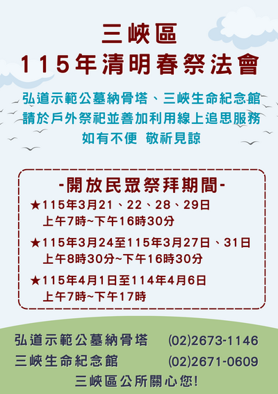 115年清明納骨塔春祭法會及交通管制接駁路線