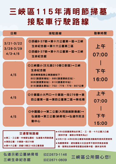 三峽區115年清明節掃墓接駁車行駛路線 (1)