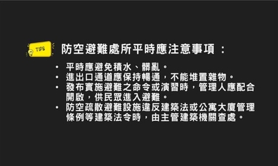 「防空疏散避難設施」宣導文宣6份及影音1部