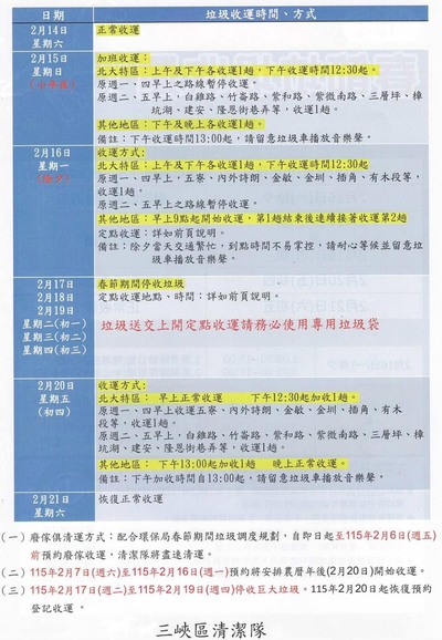 二、農曆春節停止收運垃圾時間:2/17(二)-2/19(四) 即 #大年初一至初三。